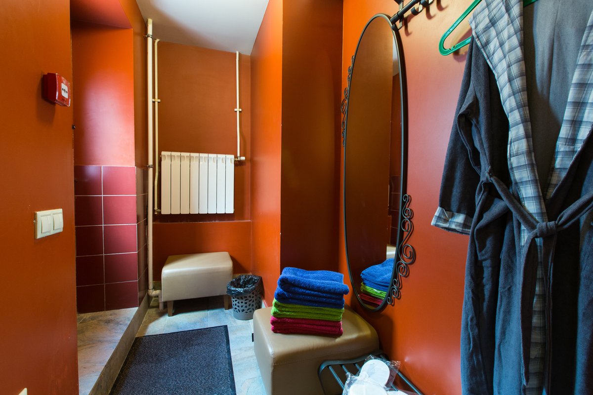 Нет чайника, нет фена, все за деньги! Напор горячей воды оч слабый, одновременно может мыттся только один человек. Администратор неприветливая до жути, как узнала, что мы пришли только попариться))) засекала каждую минуту, даже кипятка не дала чтоб чай попить